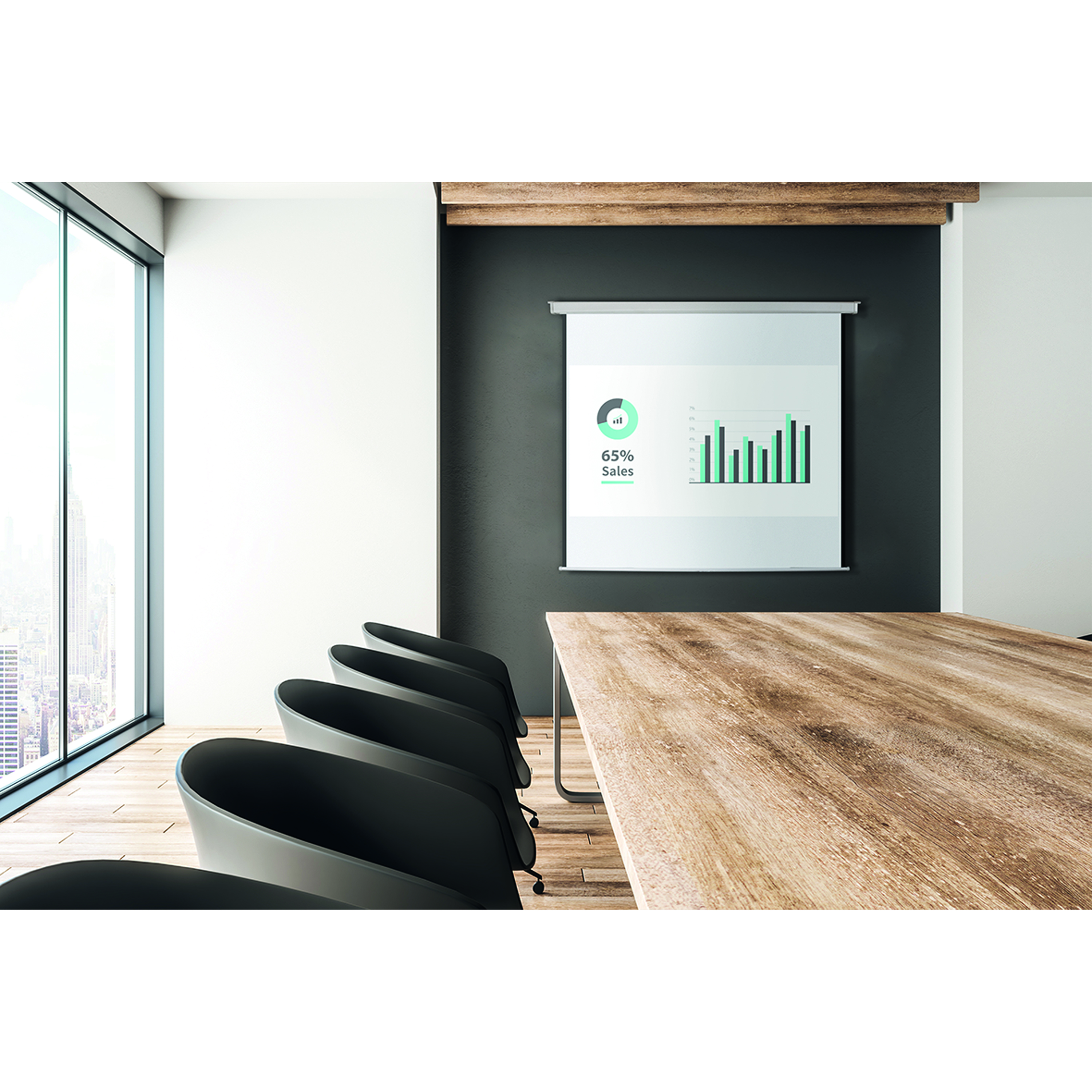 The Bi-Office Wall Projection Screen is a wall or ceiling mount projection screen to install in spaces where projection is required, such as schools, offices, meeting rooms, training centres, and many more. The cloth is matte white and provides a superior reflective surface without reflection.