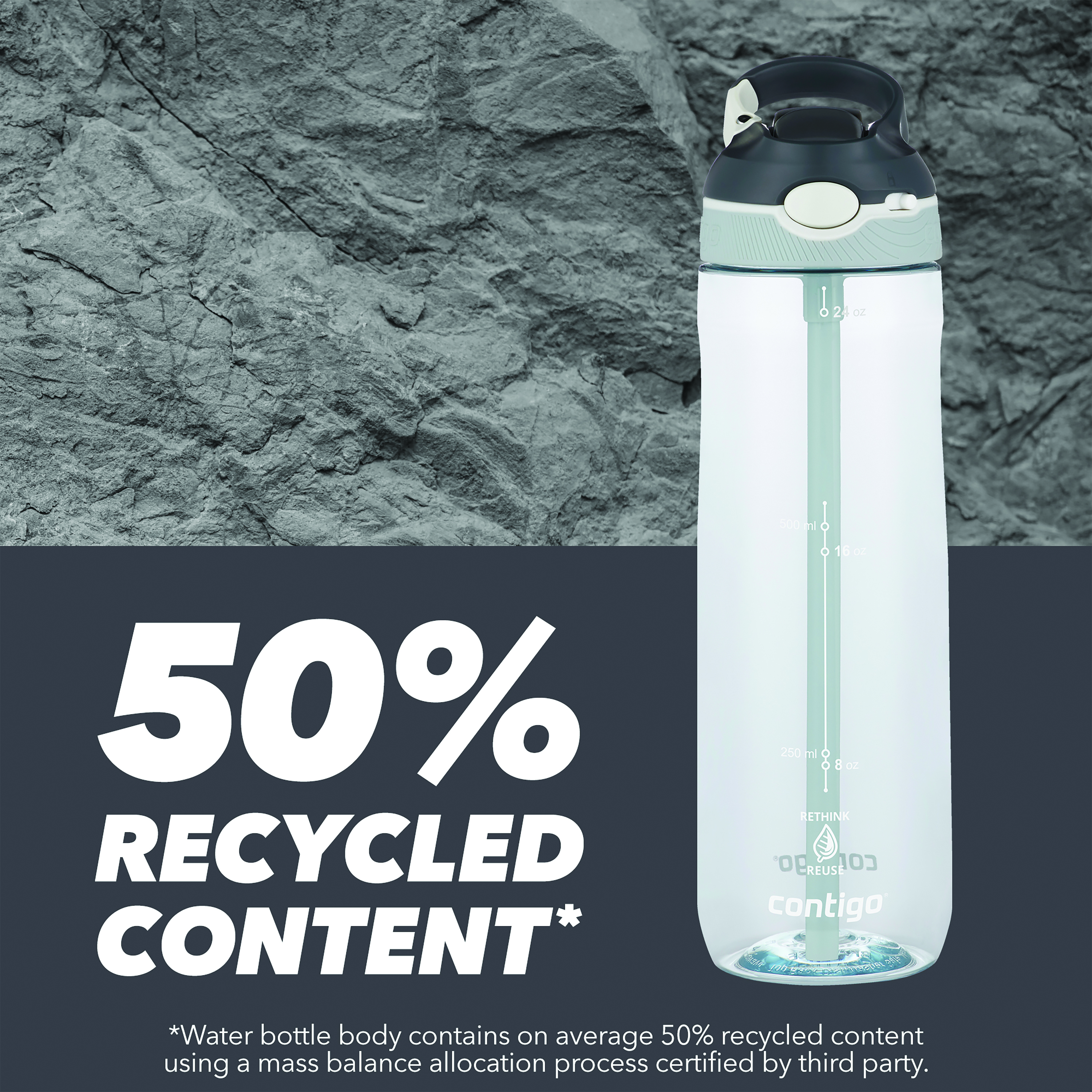 The Contigo Ashland Autospout Triton drinks bottle features a flip straw which is opened by pressing a button. Ideal for use in school, the gym, on bike rides, running, hiking and more, the Triton sports flask has a generous capacity of 720ml, for keeping the user hydrated. Made from BPA-free, 50% recycled plastic, this bottle is dishwasher-proof and leak-proof when in closed position. Supplied in Macaroon white with etched volume markings.