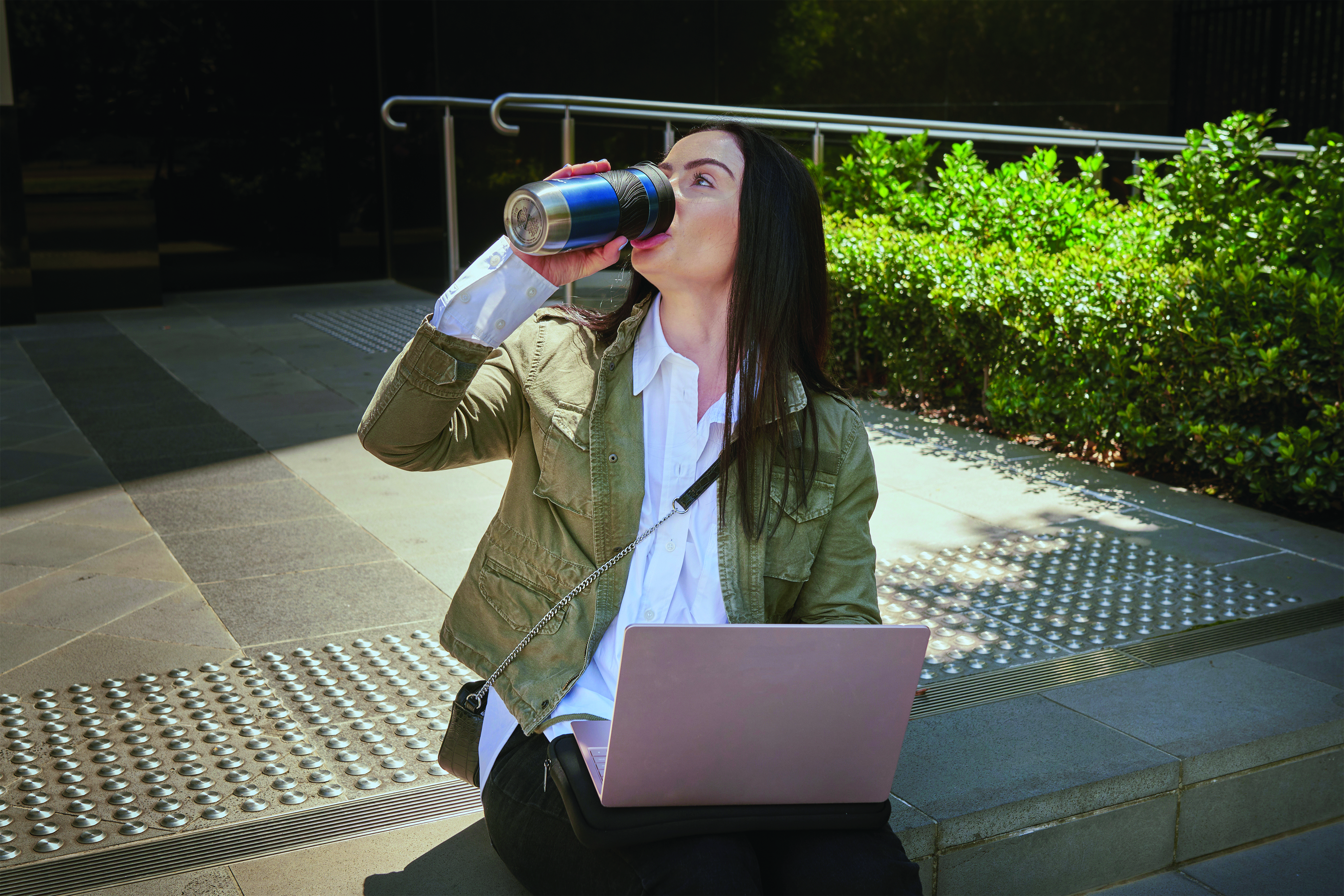 - Push the lever up to drink, then push down to seal the lid