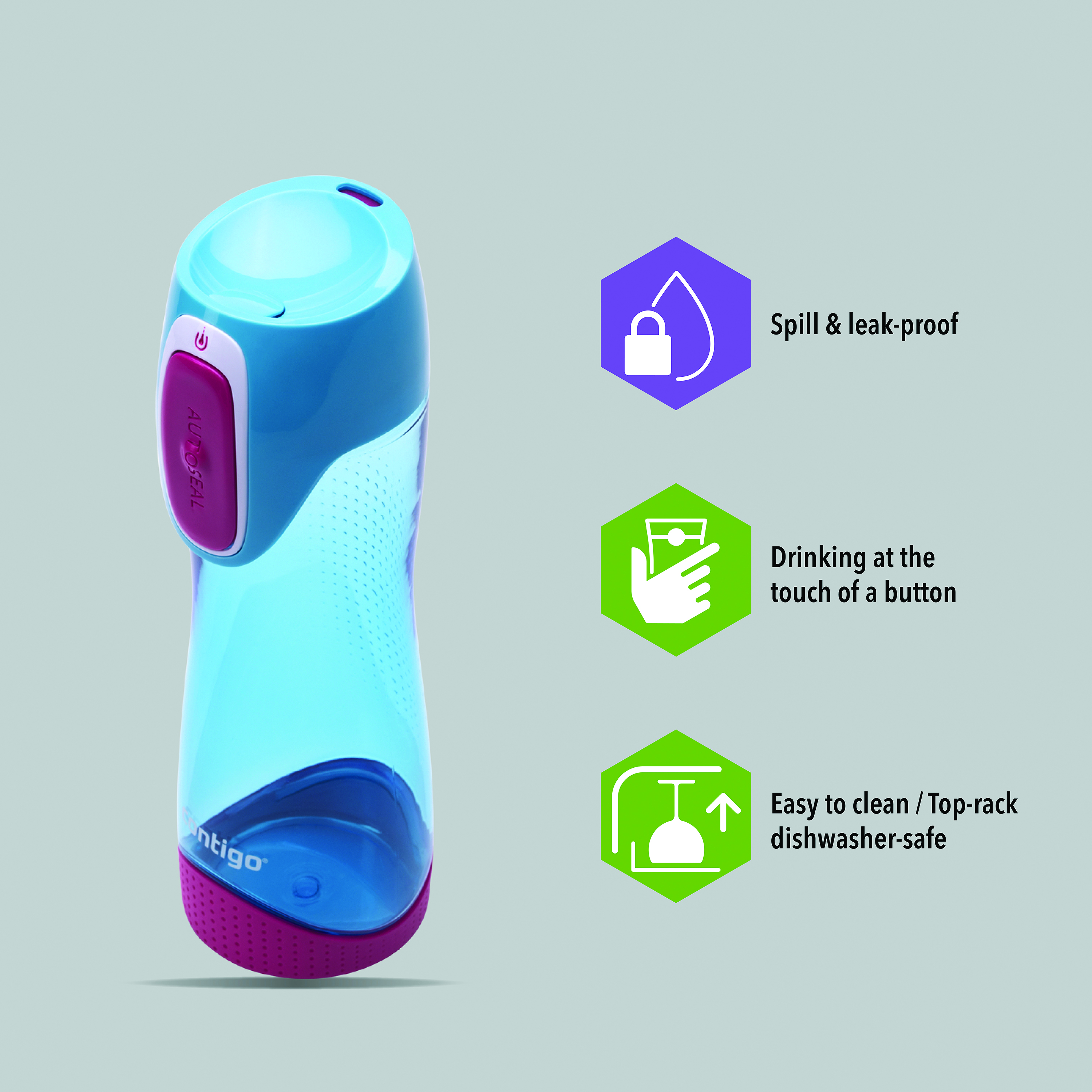 - Autoseal technology for on-the-go spill-proof and leak-proof confidence