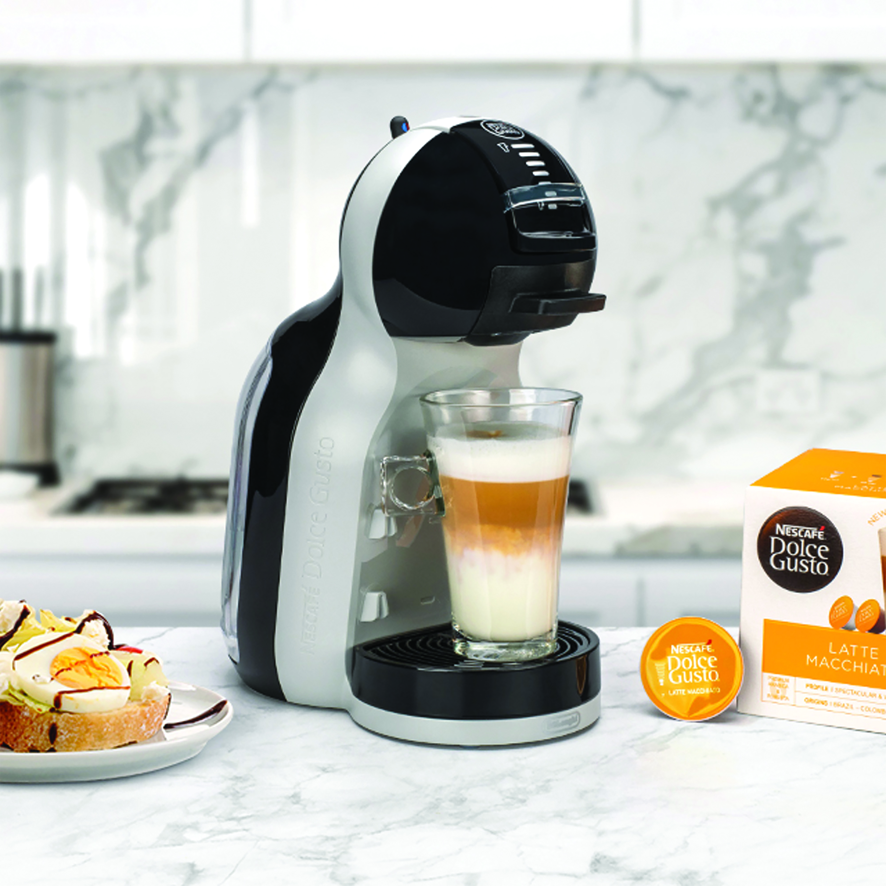 The Nescafe Dolce Gusto Mini Me, compact, automatic pod coffee machine features a 15 bar pressure and is compatible with over 50 hot and cold beverage varieties, including Nescafe and Starbucks. This coffee machine is easy to use with automatic water flow stop and preparation in under one minute. The adjustable drip tray accommodates different cup sizes to keep spills to a minimum and the automatic standby mode ensures that it is switched off after 5 minutes when not in use. Supplied in grey with an Energy A rating.
