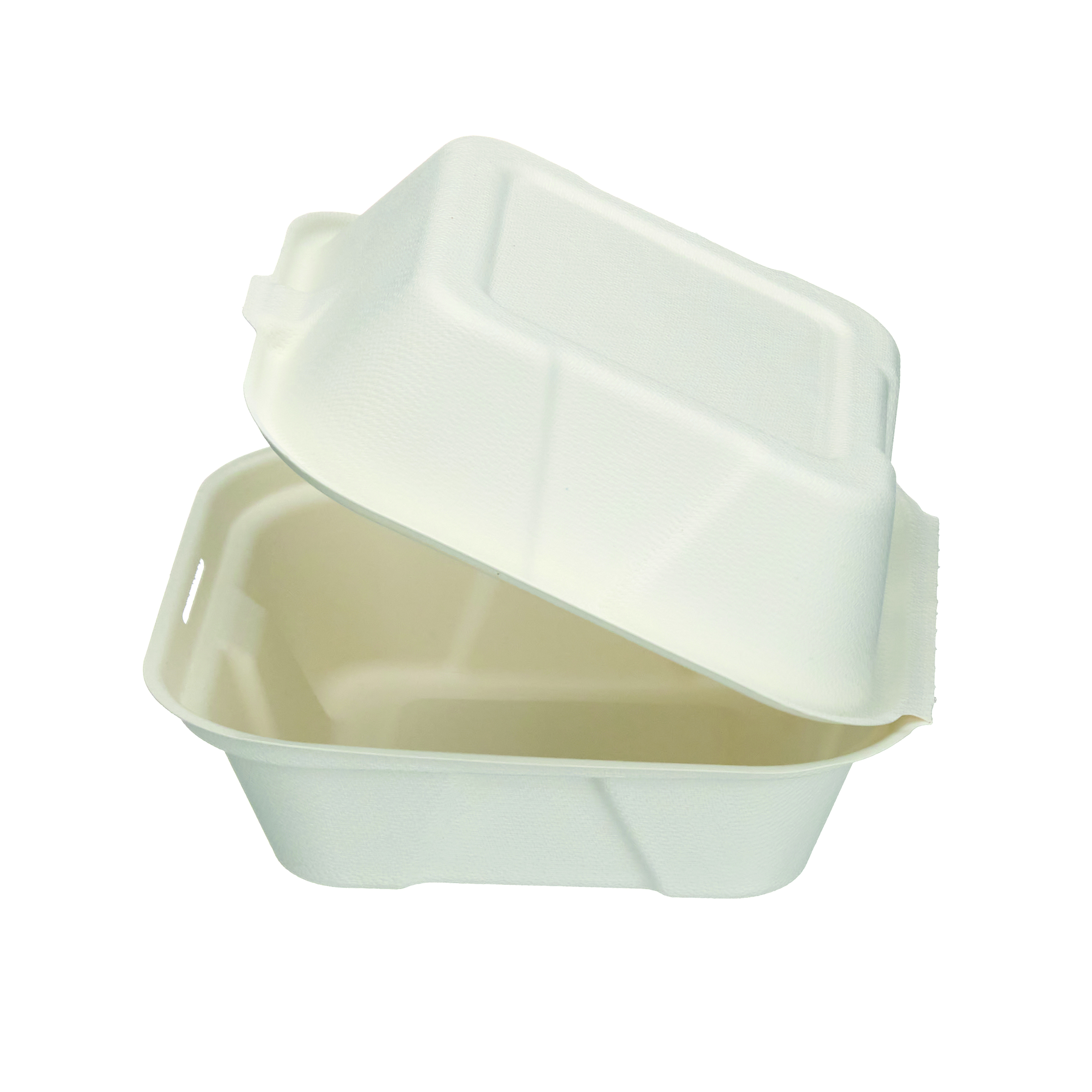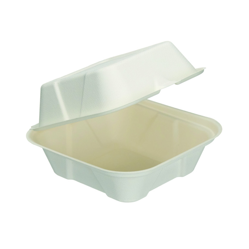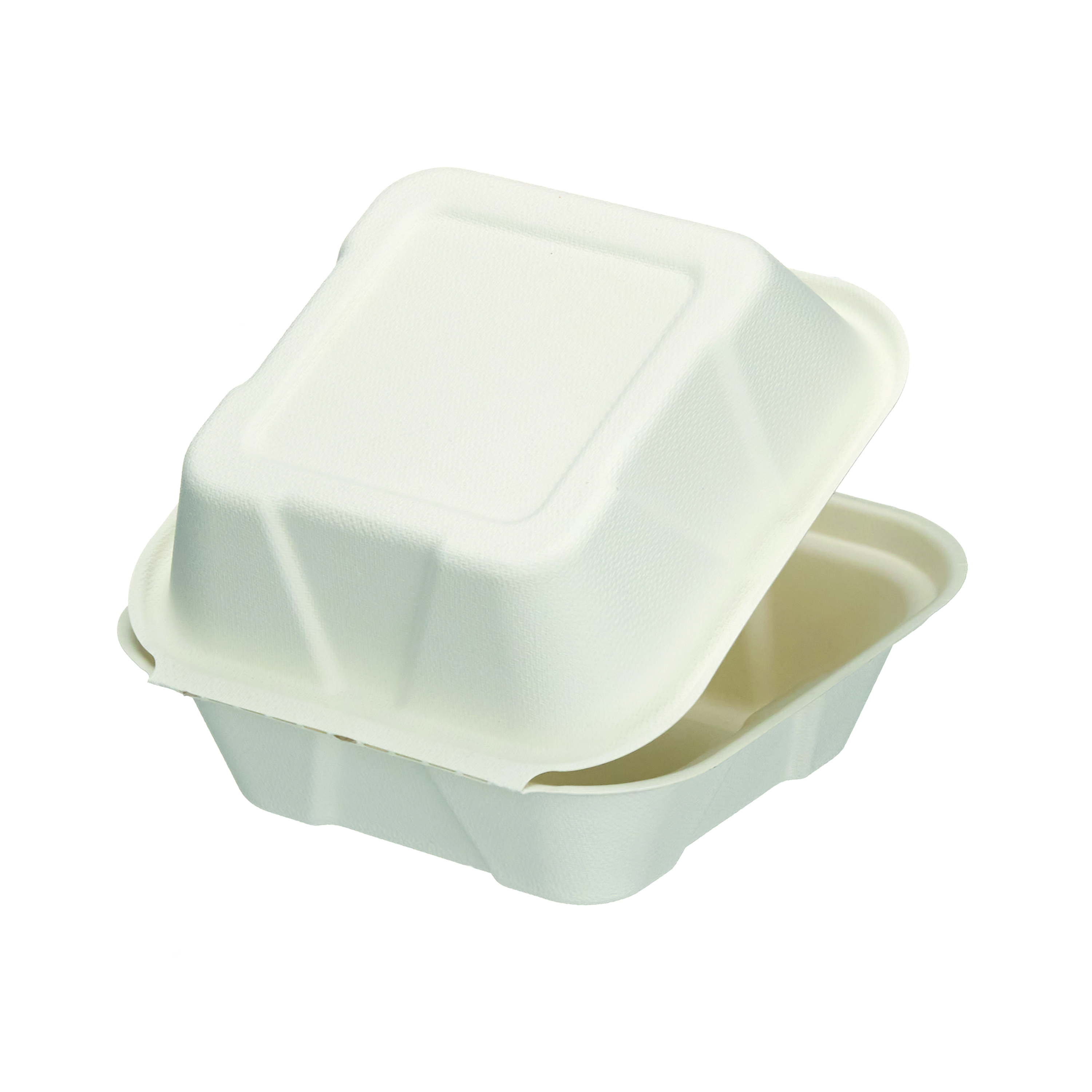 Go-Pak Bagasse Burger Box Square 6 Inch White (Pack of 500) D06001