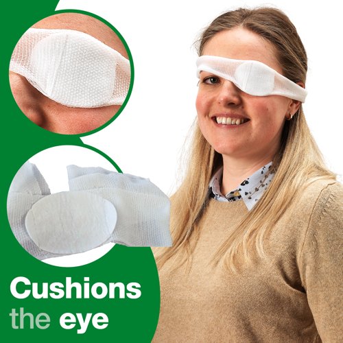 They are suitable for minor eye injuries and protect from infection. The dressings include a cushioned pad and a strong elastic bandage to hold the pad firmly in place.