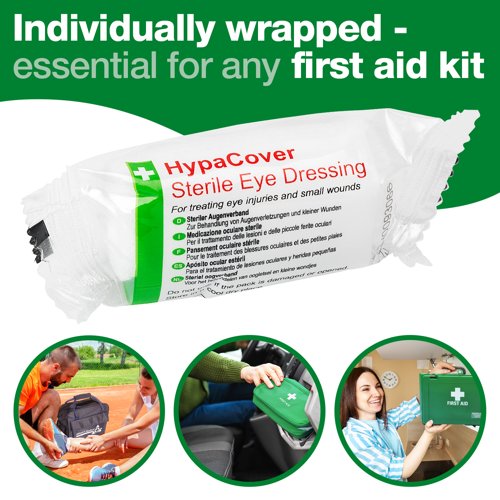 The HypaCover Sterile Eye Dressings are a must have in any first aid kit. They are supplied as a pack of 6 individually wrapped sterile dressings and are compliant with British Standard and HSE requirements.