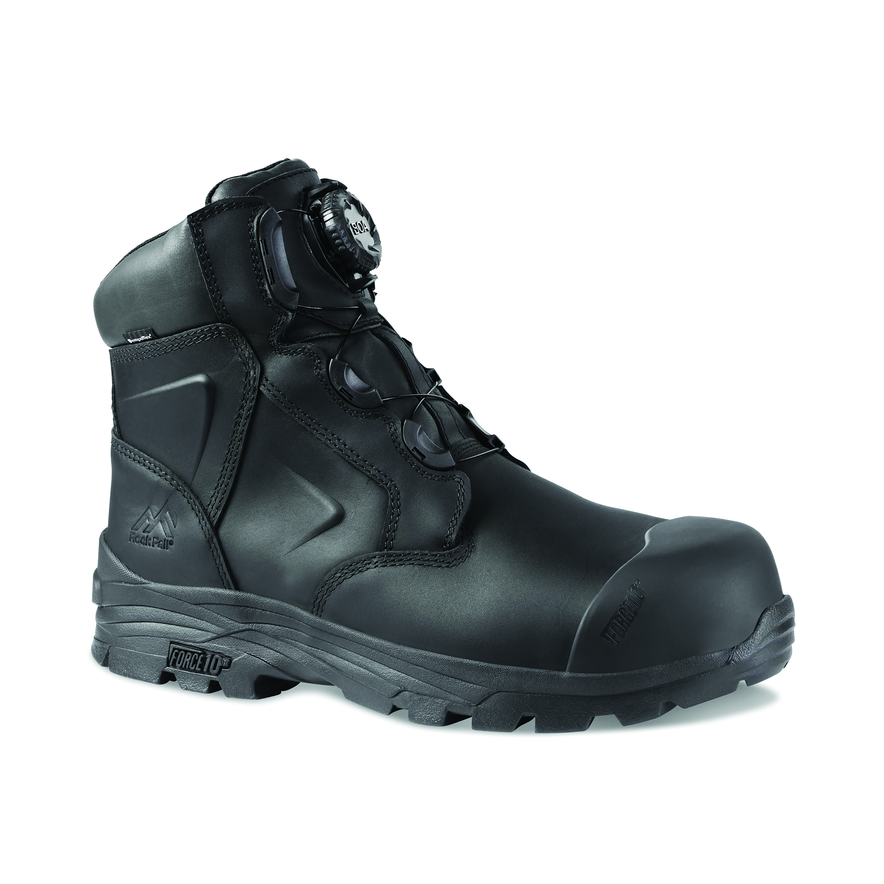 100% non-metallic boots with protective toe cap and midsole. The Dolomite boots are robust and developed with specialist durability materials including FORCE10 components, a Moisture-tech by Sympatex waterproof membrane. With an IMPACT SHIELD for protection when digging and Boa fit system, turn the dial to tighten or loosen the boots. Standard EN ISO 20345:2011 S3 HI HRO WR SRC.